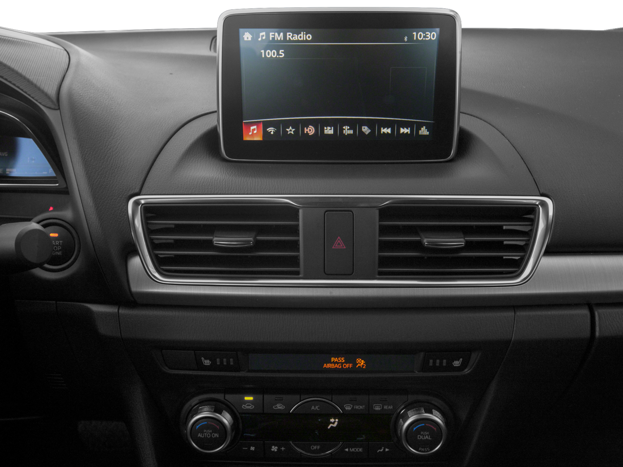 - Radio: AM/FM/CD/HD w/Single CD -inc: digital clock, auxiliary audio input jack, Bluetooth® hands free phone and audio and 2 USB audio input, Bose Surround Sound System, 9-speakers, Centerpoint 2 and AudioPilot 2, Mazda Navigation System, SiriusXM Satellite Radio, roof-mounted shark fin antenna and 4-month subscription, MAZDA CONNECT™ Infotainment System, voice-command, E911 automatic emergency notification, 7" full-color touch-screen display, multi-function Commander control, Pandora, Aha and Stitcher internet radio integration, Radio Broadcast Data System program information and SMS text message audio delivery and reply