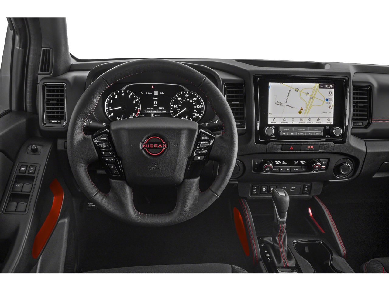 OFF-ROAD STYLE STEP RAILS, OFF-ROAD PROTECTION PACKAGE adventure medic kit, off-road adventure kit, door scuff protector and owners manual portfolio, All-Season Floor Mats Nissan PRO-4X with Glacier White exterior and Charcoal w/Lava Red Stit interior features a V6 Cylinder Engine with 310 HP at 6400 RPM*.